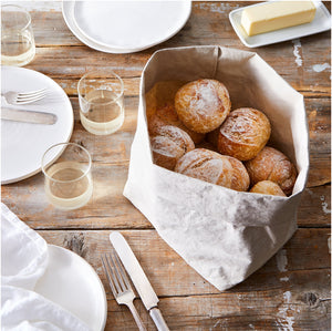 Your loaves have a fashionable new home in these washable paper bags from Uashmama. Straight from Italy, these bags are created using traditional artisan methods from cultivated and sustainable cellulose fibre. Soft but resilient, they're beautiful, can be washed like fabric, did we mention they're beautiful, they can be ironed and flattened completely for easy storage and they're beautiful. These bags are functional, look great anywhere in the house and can be used for so many things, plants & herbs, bread, baguettes, baked goods, fruits, veggies, office supplies, bathroom storage and so much more!